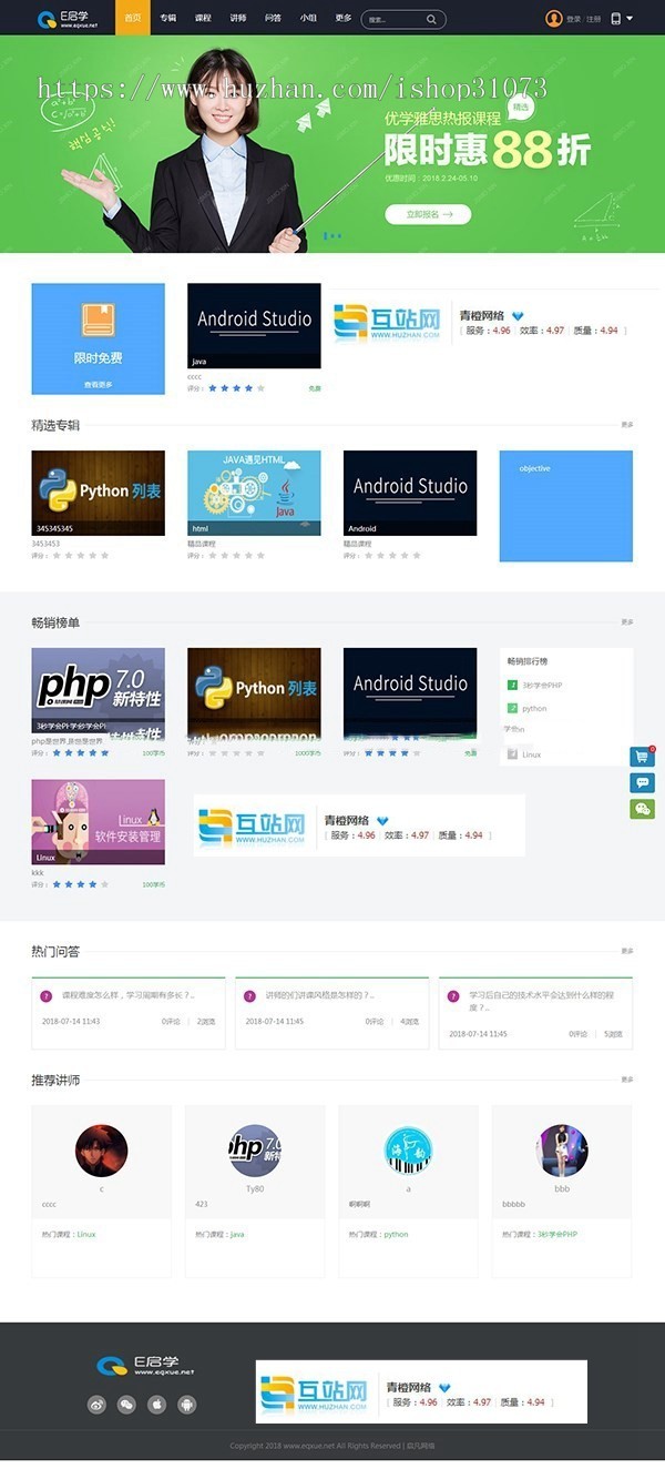 E启学在线网校系统软件是由合肥市启凡软件开发制做的一款根据PHP MYSQL的线上教育教育平台网站源代码。现如今在线教育风靡,愈来愈多的资产注入在线教育销售市场。E启学在网上系统软件,是一个功能完善的在学校学习系统,包含有视频直播系统,点播系统,课程内容系统软件,培训系统,问答网站,会员管理系统,社区平台,商城系统开发,优秀教师进驻,组织进驻。