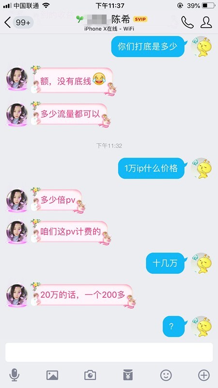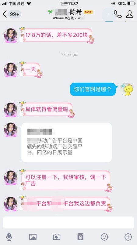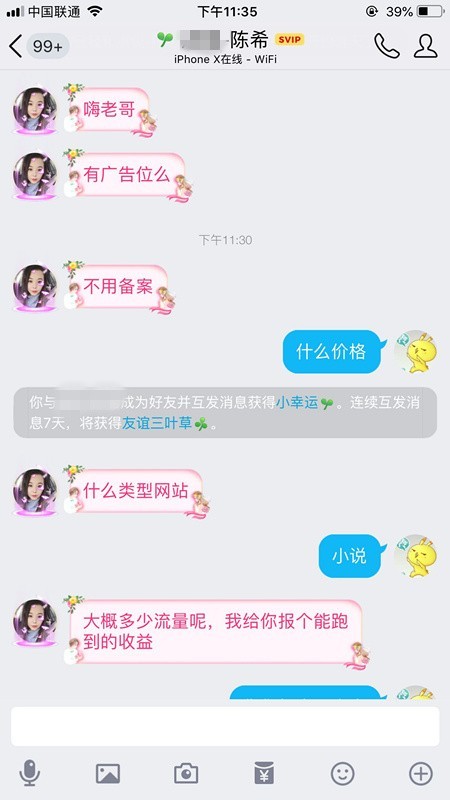 下面的图是前几天与一个广告主的会话纪录: