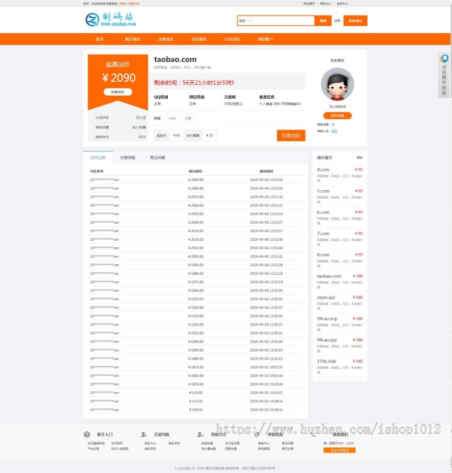 橘色PHP友价核心域名转让服务平台仿友价域名转让系统源码 域名出售平台交易源代码