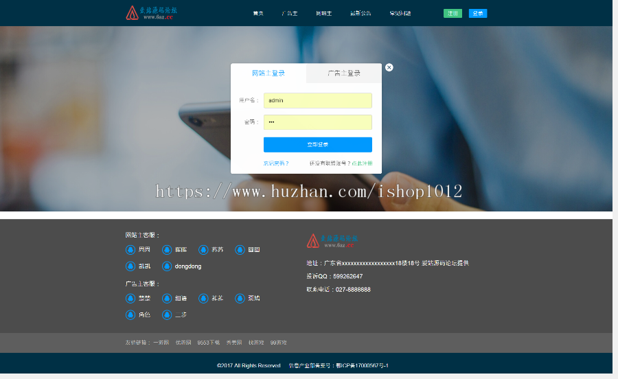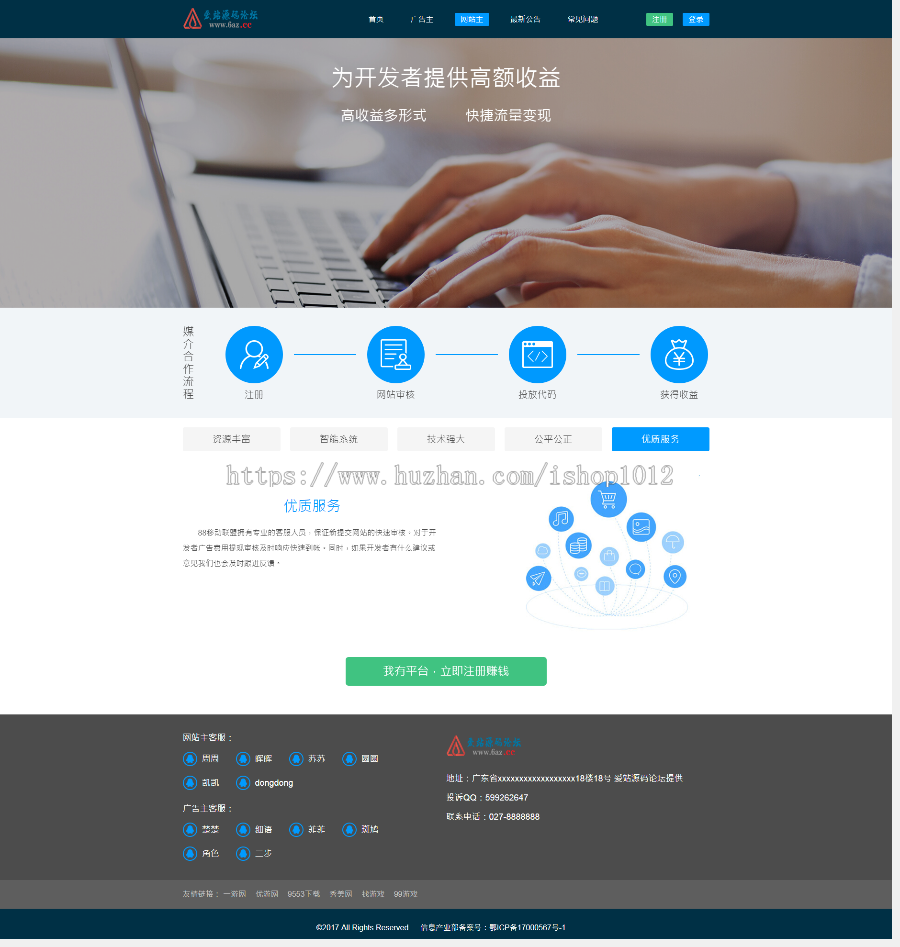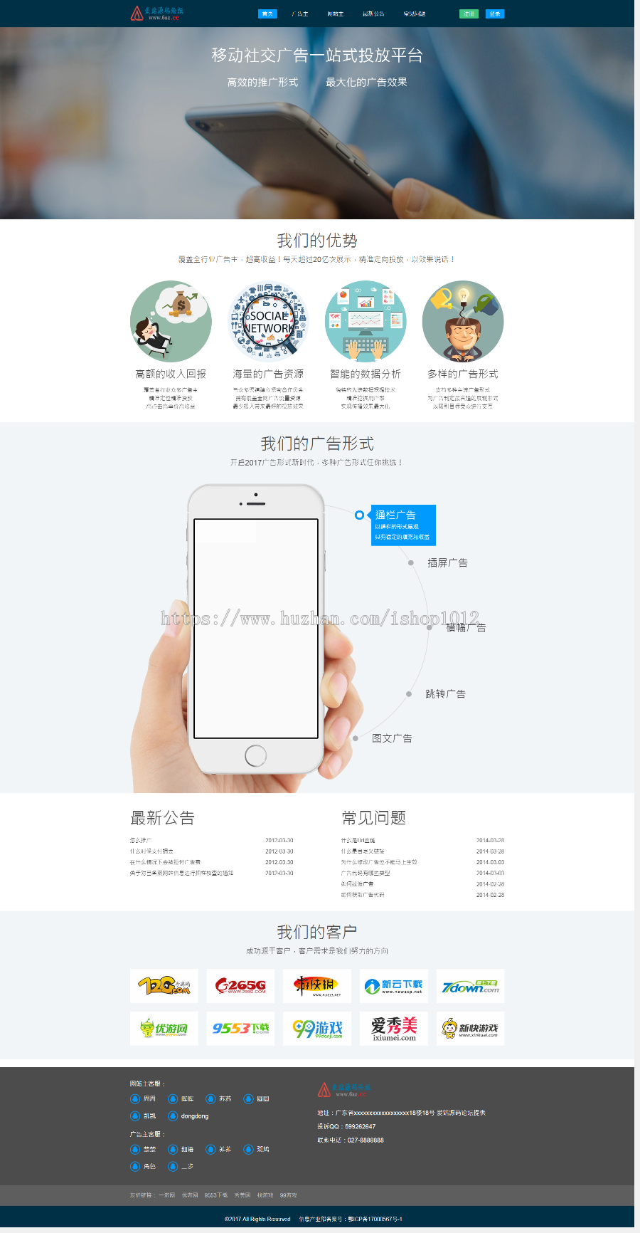 深蓝色空气广告联盟平台模版程序流程源代码 #lan