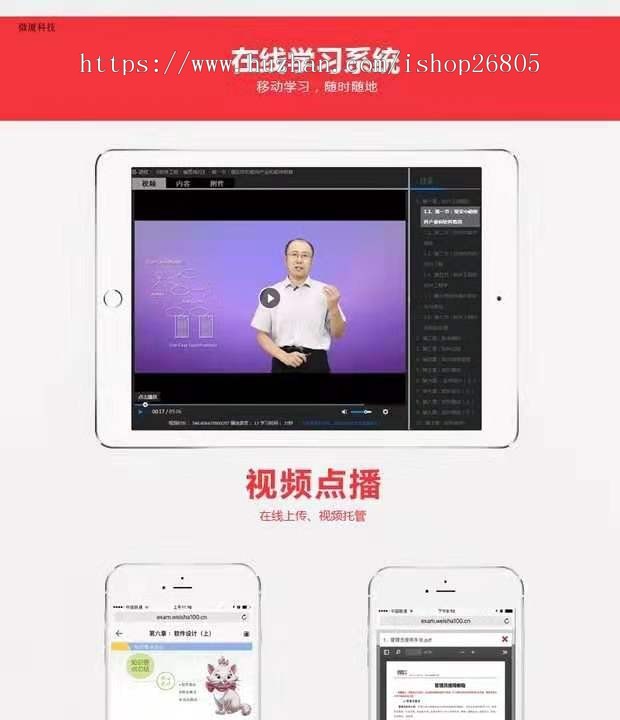 【源代码作用】:视频点播系统(微课学习)、在线做题、考试模拟、在线模拟考试,系统软件內容用互能够 自身加上,pc端、移动端可同步练习
