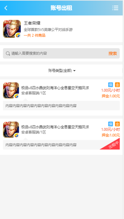 本程序流程适用直营腾讯王者荣耀代打,账号买卖,肌肤买卖