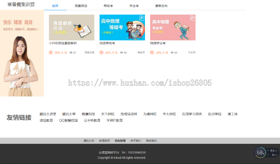 本商品是一款将“视频点播系统 题库软件 在线模拟考试” 紧密相连,打造出“学、练、考”一体线上教育系统软件,网上学习一部分能够 完成视頻的提交、转换格式、在线观看(电脑上、手机上、微信关联),并即时纪录学生课程学习;考試一部分适用多场次、多题目、关闭电源出现异常的解决等,后台管理出示好几套模版(网络课堂版、学校版、商务接待版、政务服务版)随意转换。