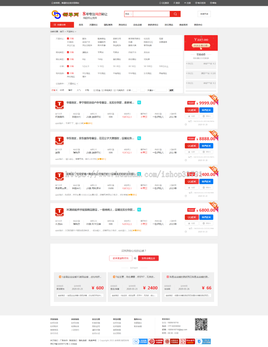网店转让3:http://mt3.94gan.net(鲜红色大滚屏网店转让DT版)