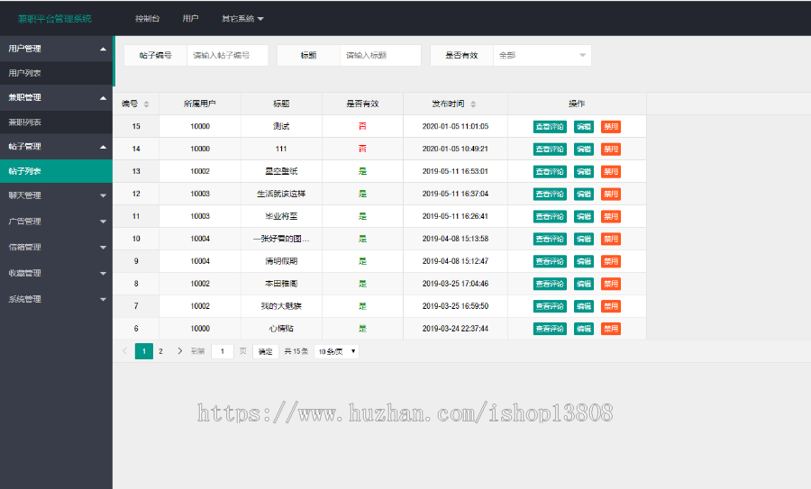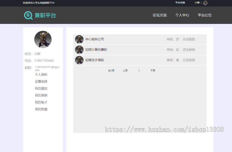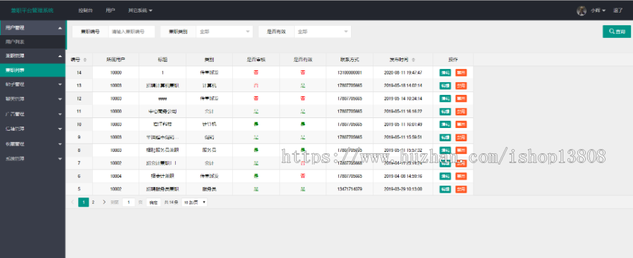 用户管理系统、做兼职管理方法、帖子管理方法、闲聊管理方法、广告管理、邮箱管理方法、个人收藏管理方法、管理信息系统