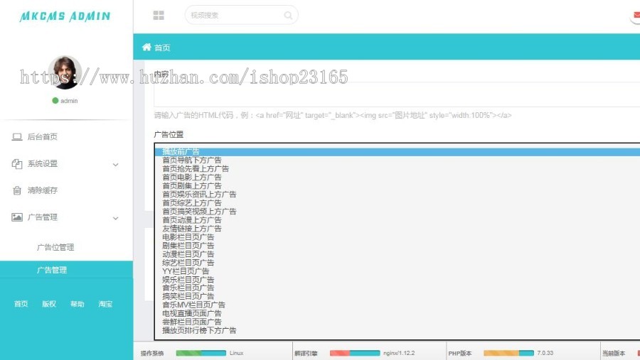 网址已设定好广告栏,后台管理可全自动插入图片广告宣传!