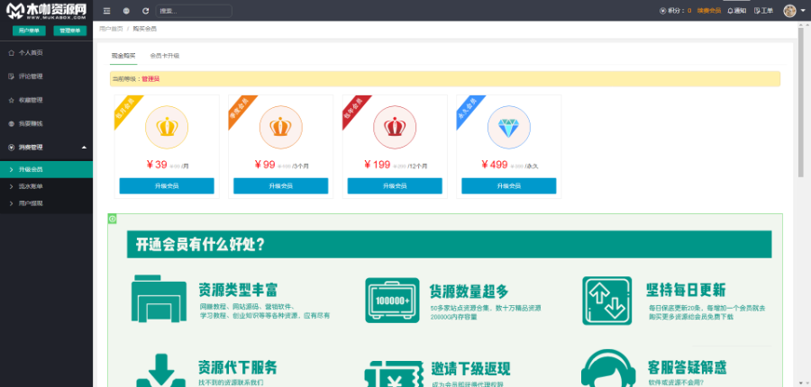 【vip会员售卖】收费标准型在线资源网,可售卖VIPvip会员