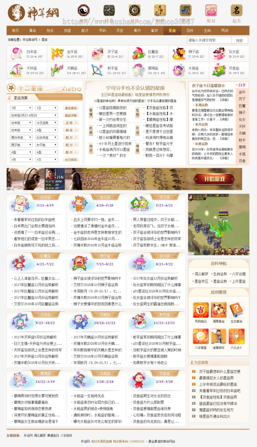 起名字取名字源代码星座测试算命网神网址工作算网源代码(带使用教程)
