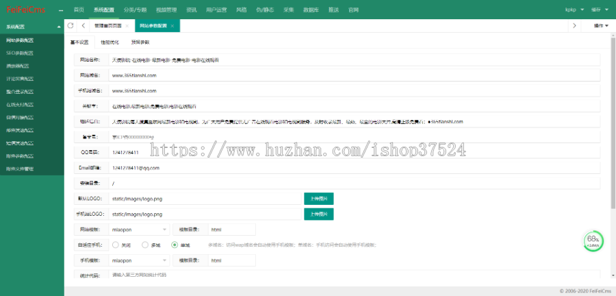 6. 挑选"系统设置",改动您网页页面模板之家的网址配备的基本信息