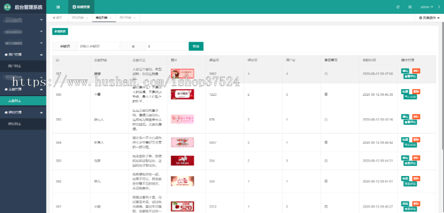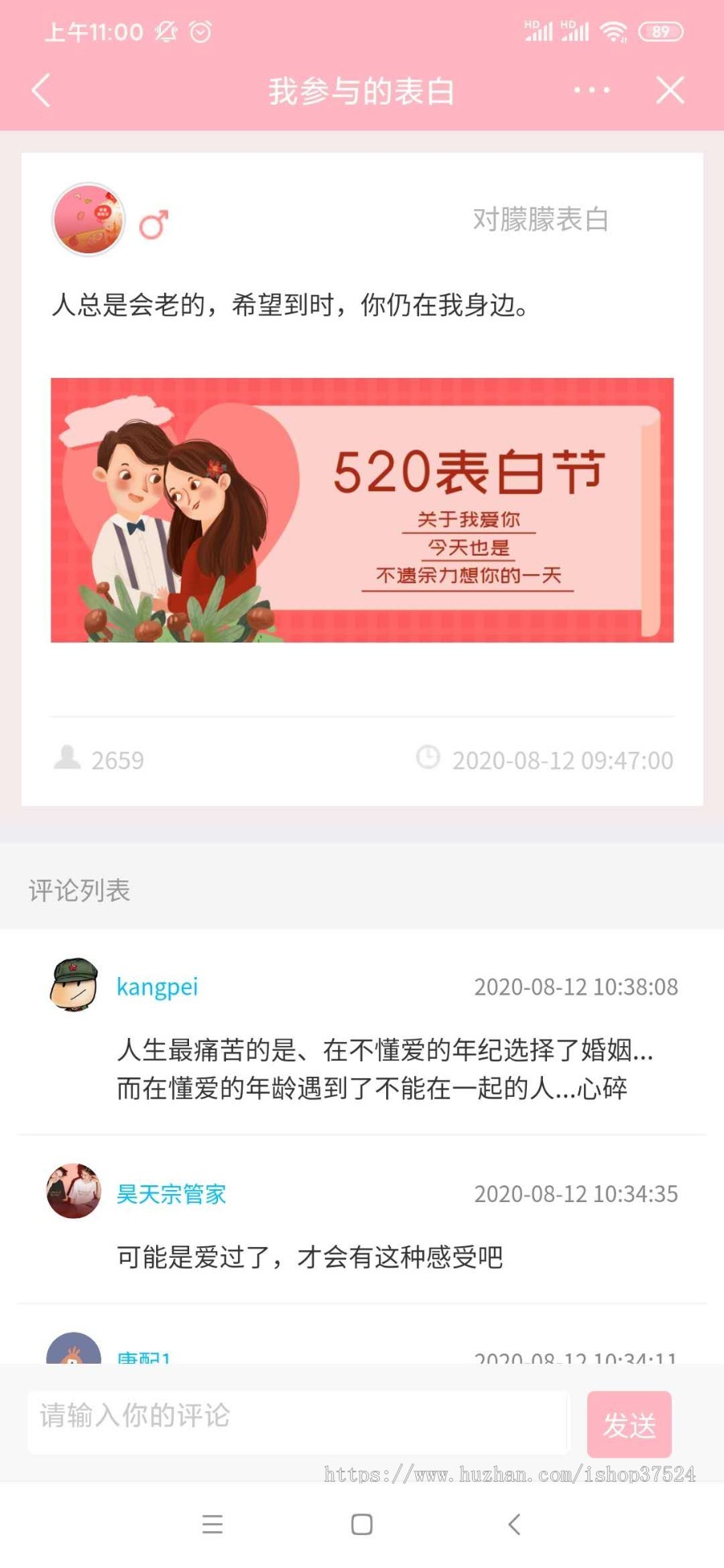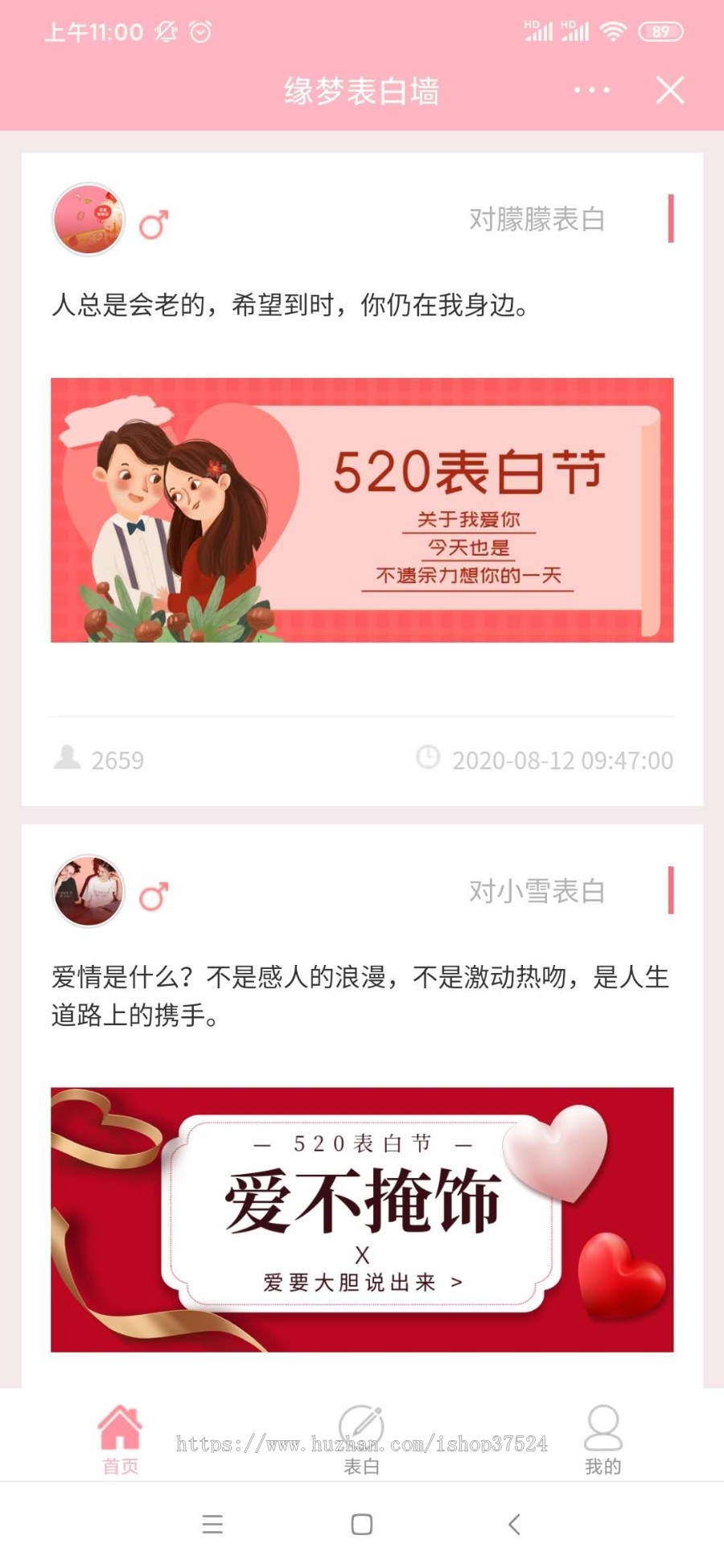 3、源代码作用:后台管理适用表白信息加上删掉,评价管理方法删掉。前端开发“我的”里边能够查询自身公布的表白信息,和自身评价的表白信息,抖音小程序不兼容在iphone上呈现,这一都还没对外开放,只适用安卓机,请知悉,本程序流程后台管理密码重置必须在MySQL数据库表里边改动,有安裝表明;