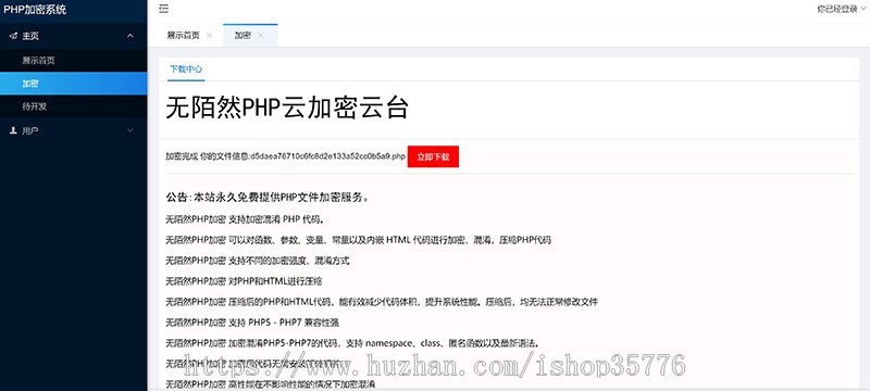 应用本数据加密,客户必须登录注册以后才可以应用本数据加密,登陆以后客户可自主提交php文件开展数据加密,数据加密取得成功以后就可以免费下载,