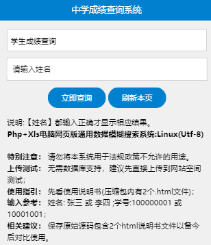 Php Excel考試成绩查分 薪水/物业管理费/水电气/服务费在网上自助式查寻 即改即用 移动端响应式 使用教程(文本 视頻)