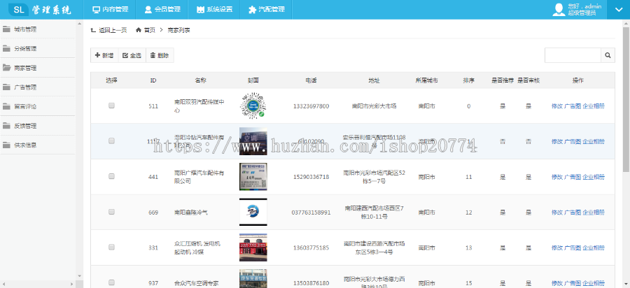 3、汽车配件管理方法:城管执法 、分组管理 、 店家管理方法、新闻资讯管理方法、广告管理、留言板留言评价、意见反馈管理方法、供需管理方法