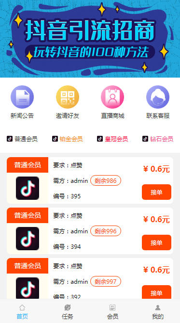 极致经营抖音点赞快手视频火山视频关注赚钱平台源代码可装包APP