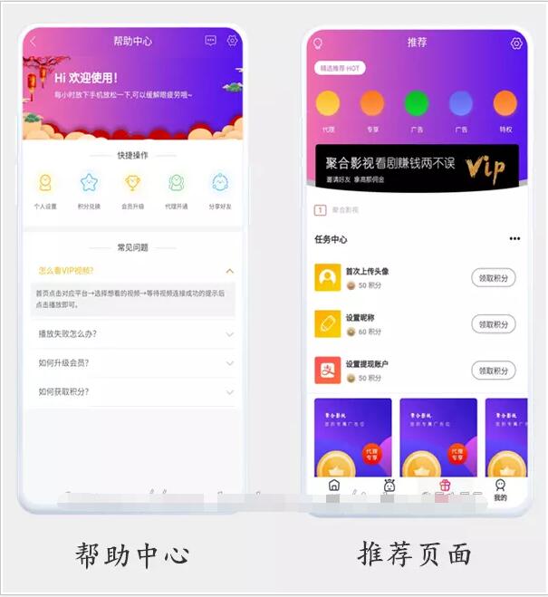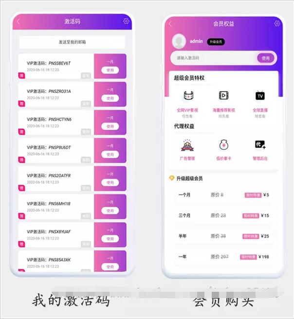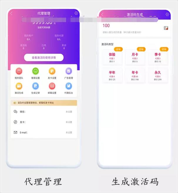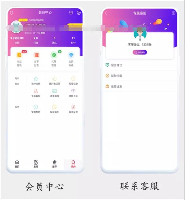 支持每日签到、佣金提现、VIP到期语音提示、签到提示音、头像/昵称修改、海报/链接分享、公告消息列表、邀请码自动识别、版本更新、广告设置等等