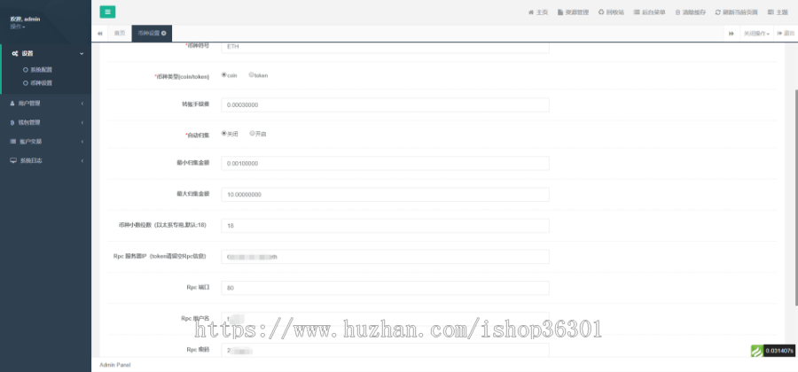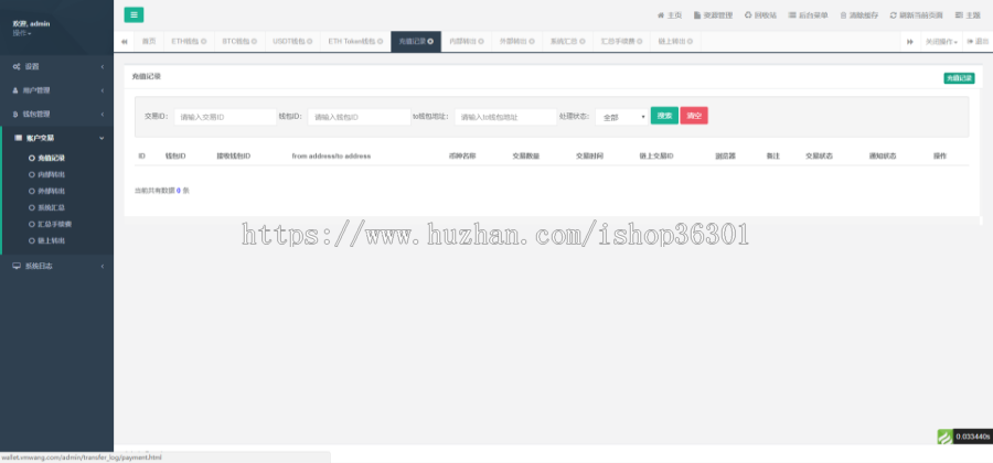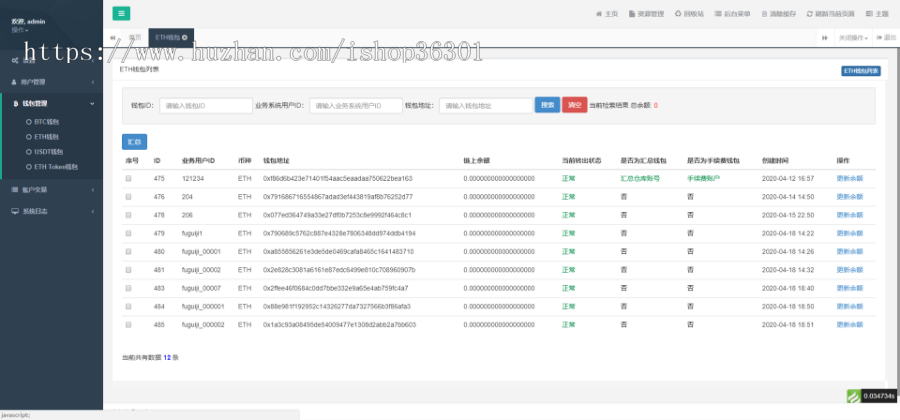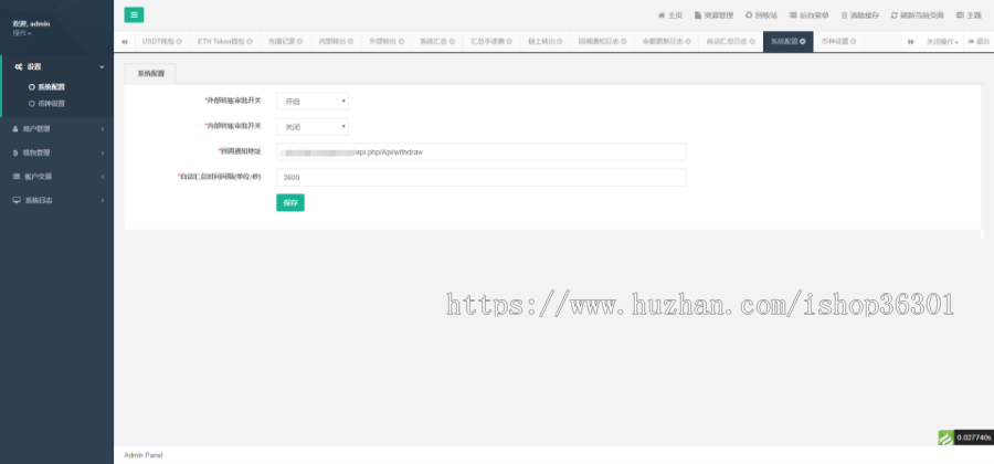 1.带管理后台,设置回调参数,自动归集,设置转账手续费,内部转账,扣款地址等