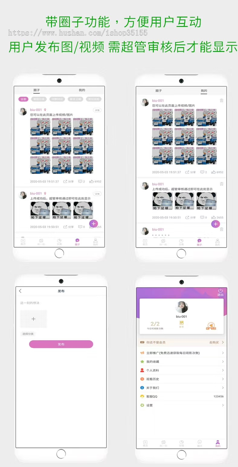3.带社交圈互动交流版块,客户能够 在这里版块网页页面公布照片/视頻等;提交的內容必须管理人员后台管理审核通过后才能够 在前台接待展现。