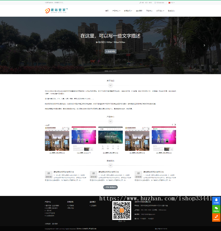 内嵌商品、新闻报道、免费下载、实例、宣传单页控制模块,可一键生成新的控制模块,如:服务、精英团队控制模块