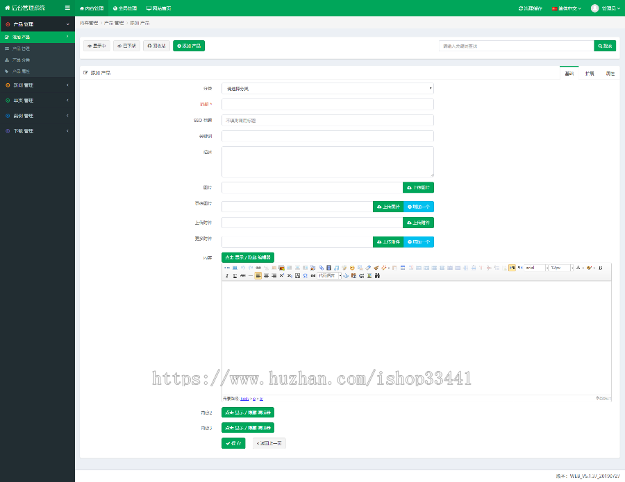 可设定上传照片和配件尺寸、图片水印裁剪图象;多级别归类、多级别地域、自定特性,简易自定义标签