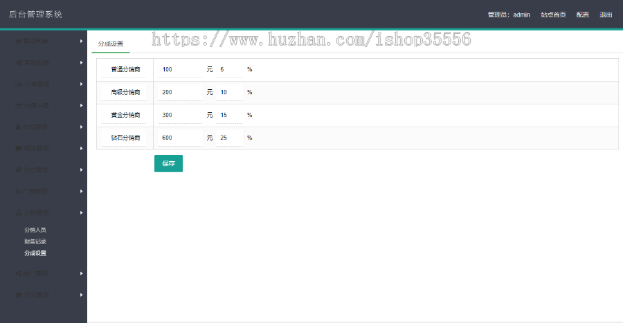 3、三级分销商,后台管理设定占比