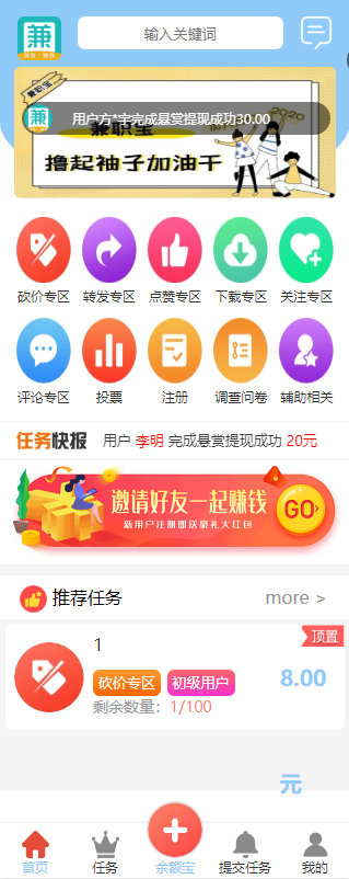 【2020】二开全新升级加支付宝余额宝每日任务悬赏任务兼职任务关注任务系统服务平台源代码众人帮赚钱威客任务