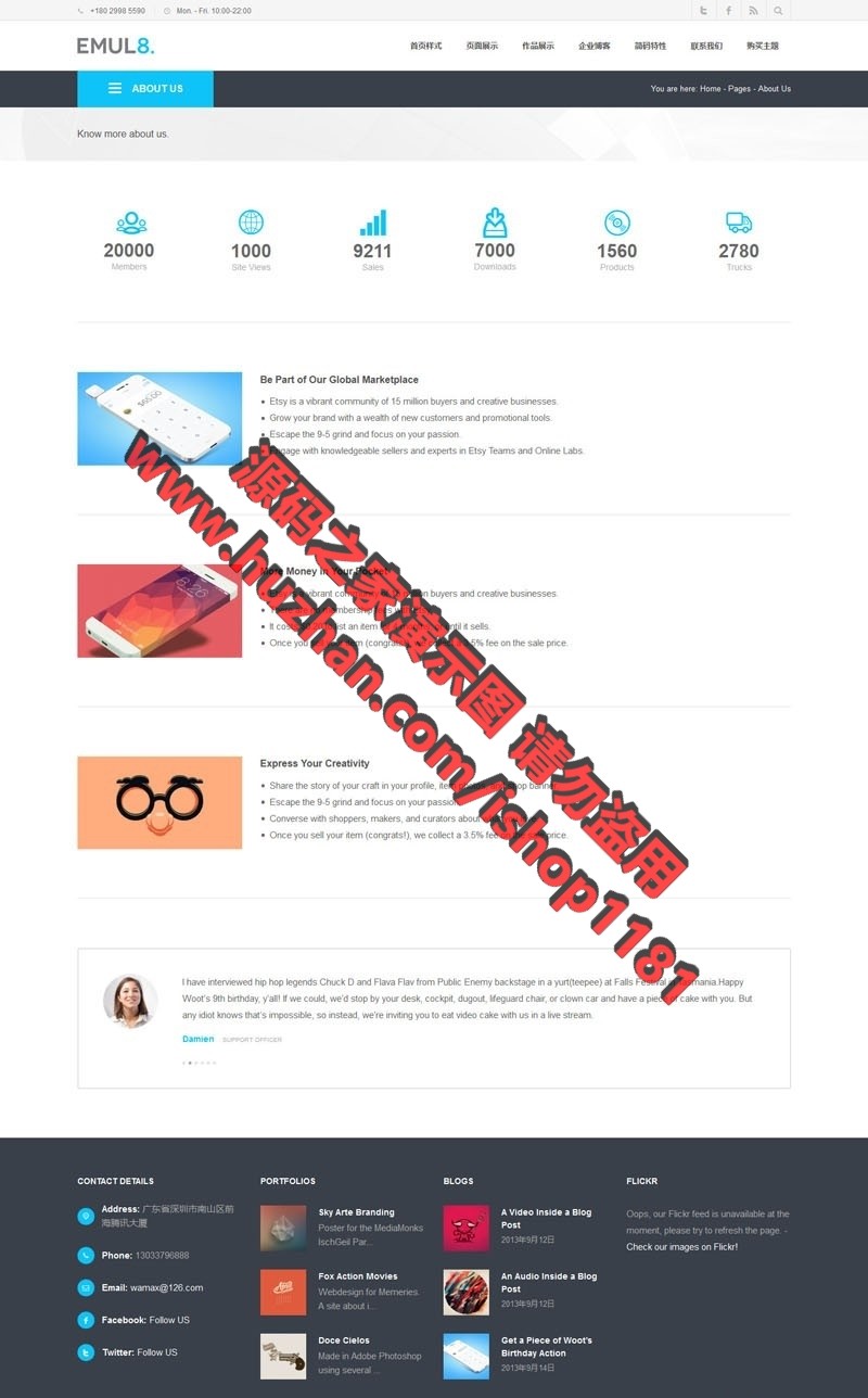 ulate外贸企业wordpress汉化主题自适应和视网膜支持,拖拽页面搭建Visual Composer,强大选项面板,40+简码,3个预置皮肤,2D + 3D 分层幻灯片,无限侧边栏,WPML 和本地化支持,SEO,10+自定义小工具,宽和窄2个版本,平滑滚动,500+谷歌字体,子主题支持等。魔客吧给大家提供的是wordpress整站打包程序,上传后安装好即可使用。不用在自己去设置页面,演示数据里已经设置好了页面,并包含演示数据,方便新手使用。