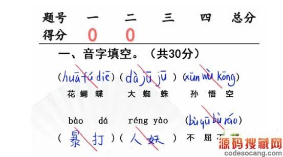 1、第一题:全部判错即可(hu die、zhizhu、sunwukong、报答、仍要、buqubunao)