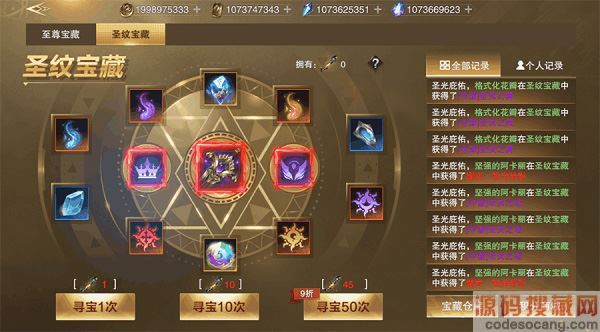 其中最大的两个圣纹“圣灵之冠”和“圣灵之翼”只能通过圣纹宝藏副本中才能获取,是一个氪金的抽奖系统,我也是手都点累了才抽到这两个圣纹。