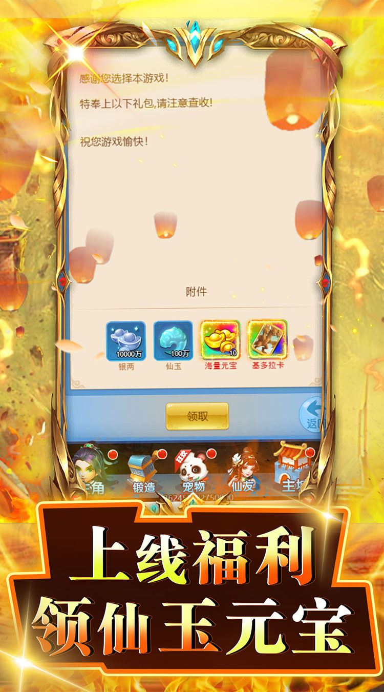 送VIP20、100万仙玉、海量元宝*10、1亿银币、基多拉*1