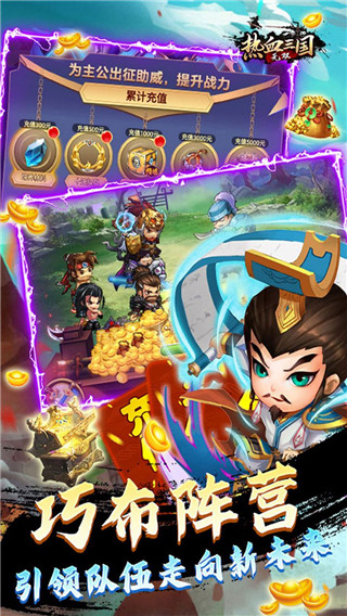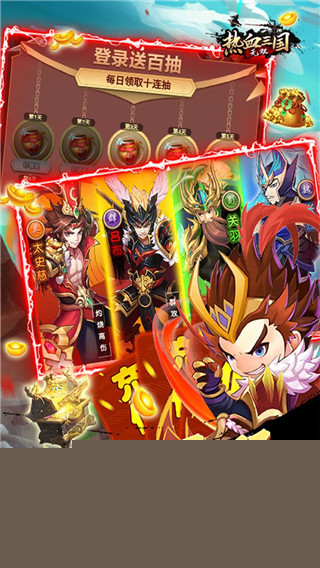 热血三国无双是新一代匠心打造的三国题材卡牌策略手游,游戏采用精致的Q版风格,海量历史武将可以选择搭配,众多扣人心弦的剧情故事,超热血的副本任务,都将为你带来沉浸式的游戏体验。今天所带来的是热血三国无双折扣版,该版本较之其它版本来说更有优势,首先上线就能获得最低的充值折扣,最低可享受三折优惠,其次,拥有海量奖励以及限时活动可以参与,畅快战斗等你来挑战。游戏完美糅合了回合制与卡牌的特色玩法,超高可玩性给玩家带来极致的游戏体验,酷炫热血的战斗过程,各种技能特效炸裂整个屏幕,各式各样的PVP模式,提升等级之后就能在线战斗,多种挑战模式随机开启。玩家将在游戏中选择自己的三国武将,每个武将都有自己的专属的技能,在你升到一定的等级后还可以进行进阶,获得全新的技能。海量的BOSS等你挑战开启,一段全新的冒险之路,兵种可互相搭配,各种战斗模式,让你玩出心机感,拒绝无脑的操控,搭配阵容,开启绝杀模式。