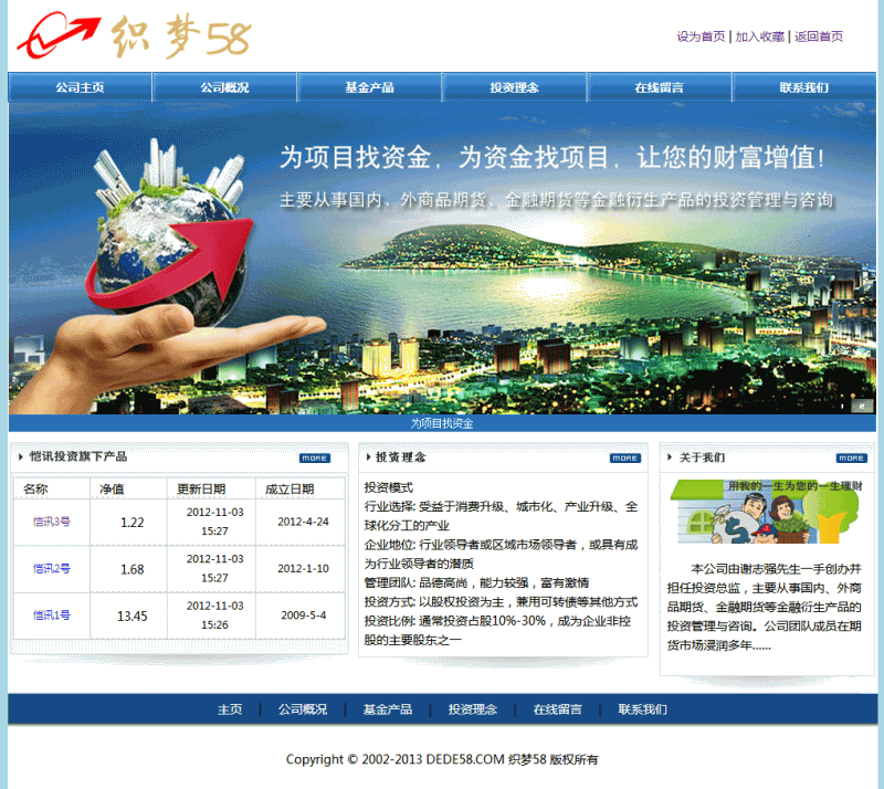 织梦最新内核开发的模板,该模板属于金融投资管理类企业,