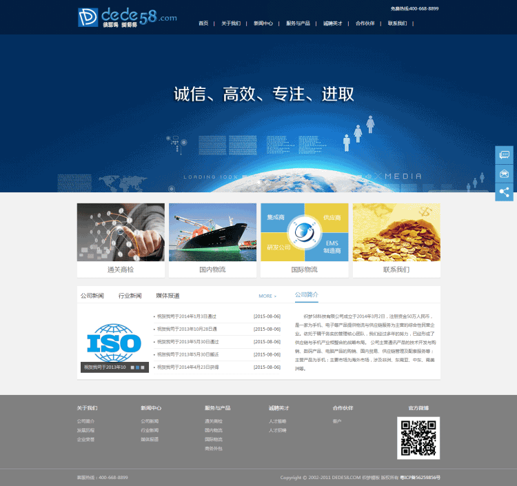 服务行业使用,整站蓝色搭配,干净大方.此款织梦模板采用UFT-8内核制作,