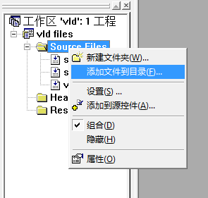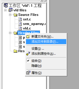 4、选择左侧的【Source Files】,点击右键,选择【添加文件到目录】,将D:php-5.2.9extvld目录下的所有C文件添加到此目录,如图2所示;