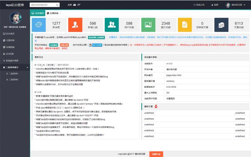您现在的位置:首页  >  你没有权限下载软件:实用的layui网站后台管理界面模板html源码!