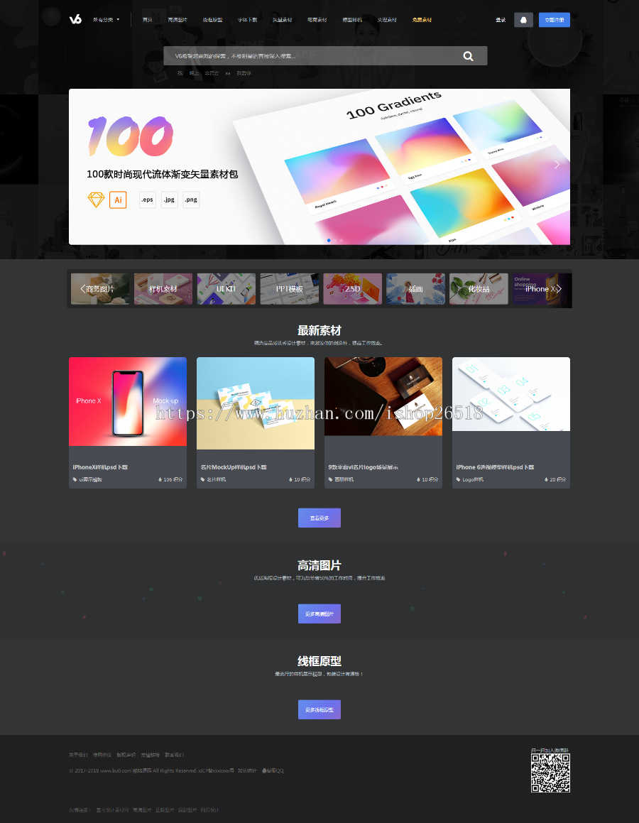 新版织梦黑色大气仿v6design图片素材设计类下载站模板,本模板为整站模板。