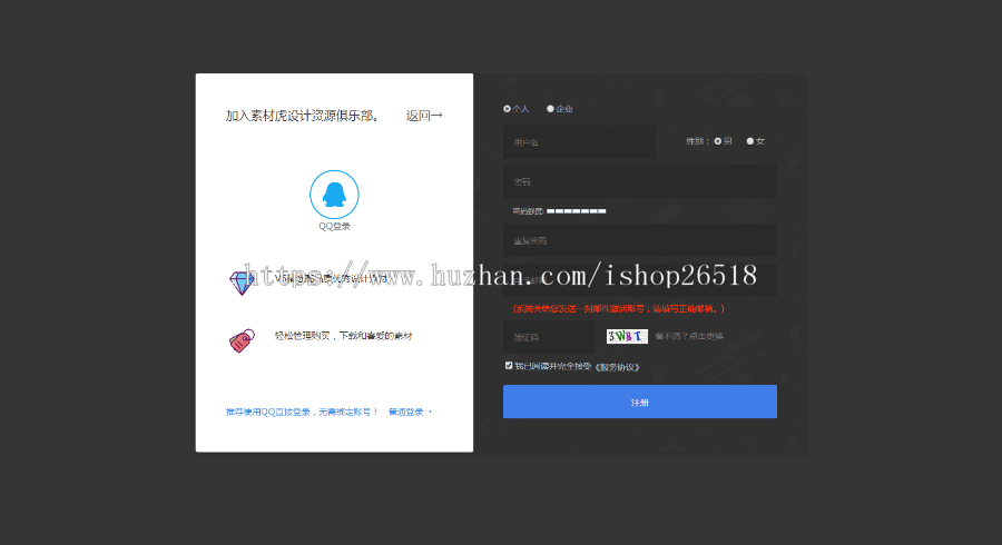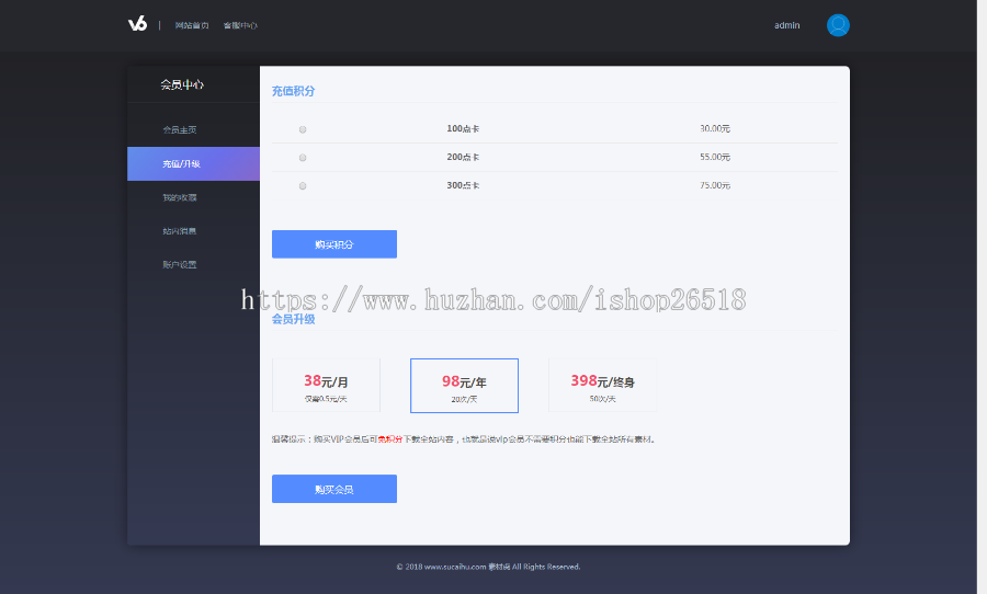 支持设置会员收费下载,支持QQ一键登录,带会员中心,