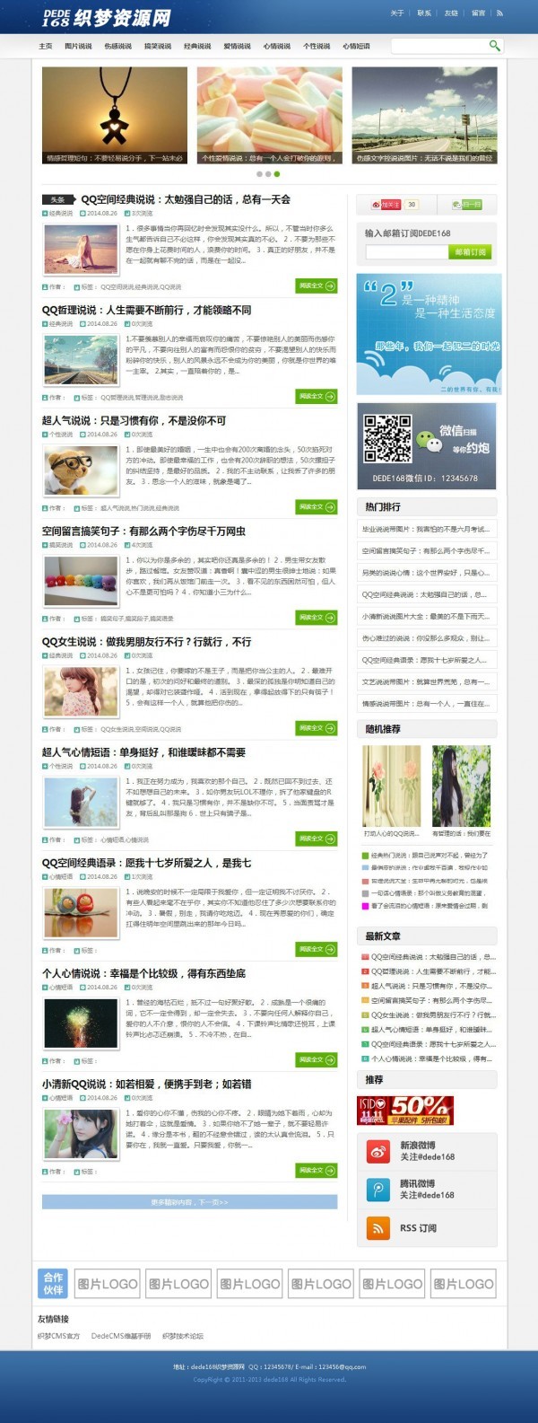 它是一套浅蓝色配搭、两栏合理布局的精典dedecms博客模板,模版包括了首页模板、文章列表页模版、文章页模版、图片列表页模版、照片內容页模版及其关于我页面设计,页面设计精致,适配IE7 、Chrome、Firefox、Opera、Safari等主流浏览器。做为CMS网站源代码特性的织梦cmsDEDECMS,用于搭建博客型网站的客户很少,因而dedecms博客模板相对的也就很少,想找一款精典dedecms博客模板相当不容易,何不试一下这款!