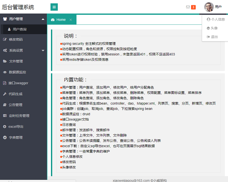 想学习培训spring boot的同学们还可以此后新项目下手,该编码沒有过多封裝,便捷学习培训或是二次开发,你能非常容易的改动一切程序模块。