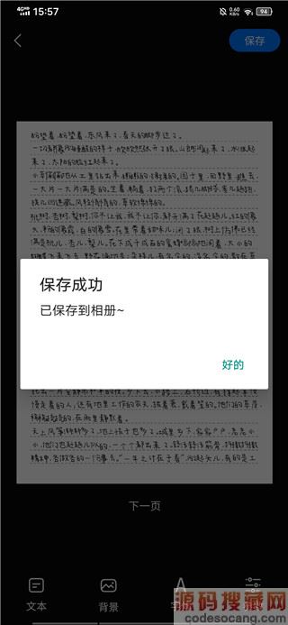 5、完成所有修改后点击右上角的保存就可把文本储存到相册中,方便用户分享打印。