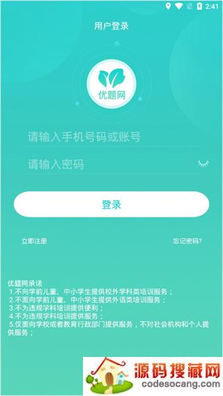 下载后,打开优题网app或电脑软件,选择【立即注册】,若已有账号可以直接登录。填好个人信息后,勾选并点击注册,即可注册账号。