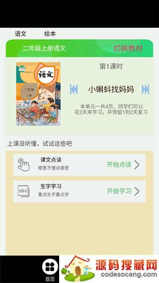 2、点击课本,进入相关详情页,可以进行课本点读和生字学习
