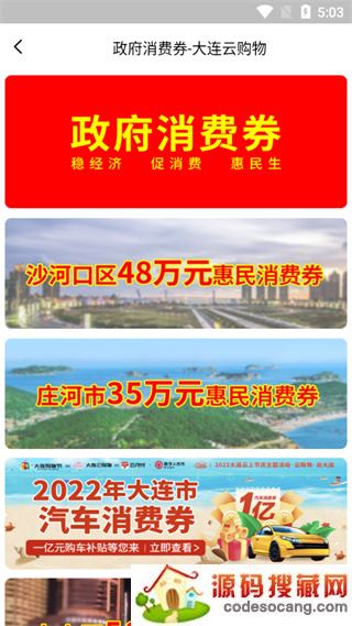 2、点击“政府消费券”可查看各个地区的消费券总情况;