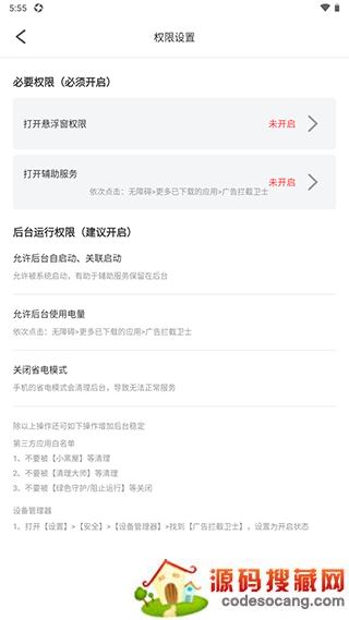 3、点击打开悬浮窗权限、打开辅助服务权限,全部选择开启状态。