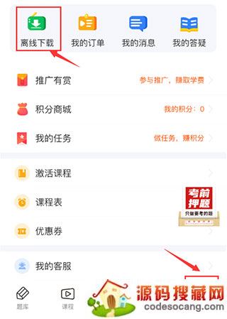 2、点击底部菜单栏“我的”按钮进入个人中心,打开“离线下载”页面观看课程。