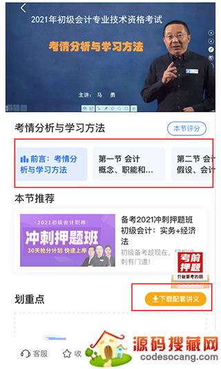 3、课程播放页面可随时设置播放速度、切换章节、下载配套讲义、收藏课程等,享受多样化的教学服务。