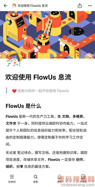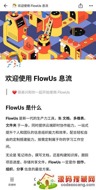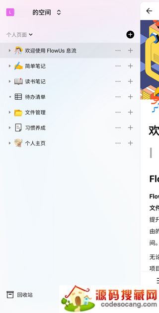 FlowUs是由云上绿洲(北京)科技有限公司研发推出的一款为个人和团队打造的新一代生产力工具,简洁且清爽的操作界面,功能一目了然,可以很好的帮助用户记录各种内容,是学生上课、工作人员办公必备的记录软件。用户可以将其视为多媒体笔记本、协同办公平台或者是一个网盘,与传统的笔记软件相比,FlowUs编辑页面的开放度堪称无敌,无论是笔记代办,撰写文档,还是构建知识库,跟踪项目进度,存储共享文件,它都能做到,并且这款软件不仅支持个人使用,而且还也适用于团队,在这里你可以独自或和伙伴们一起,像一间真正的工作室中一样,可收纳所有珍视之物,又可在其中尽情发挥创造,成果一目了然,可以满足很多用户的使用需求。有需要的朋友们欢迎前来下载体验。