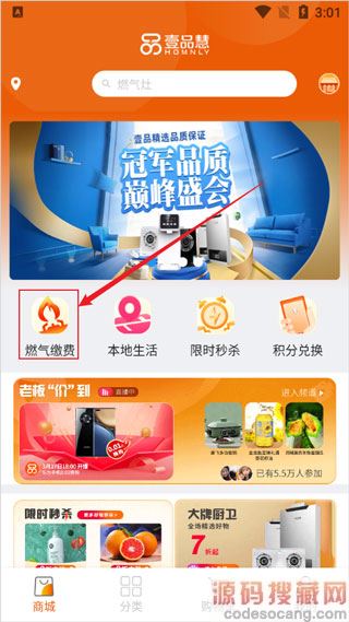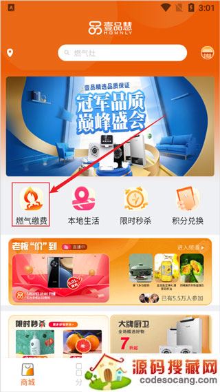 1、打开壹品慧生活app软件后,点击主页中的“燃气缴费”