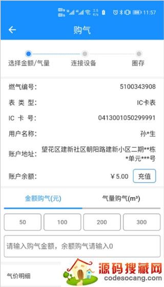 4、按照界面提示核对用户信息,并输入购气金额或购气量,输入完成后进行支付;