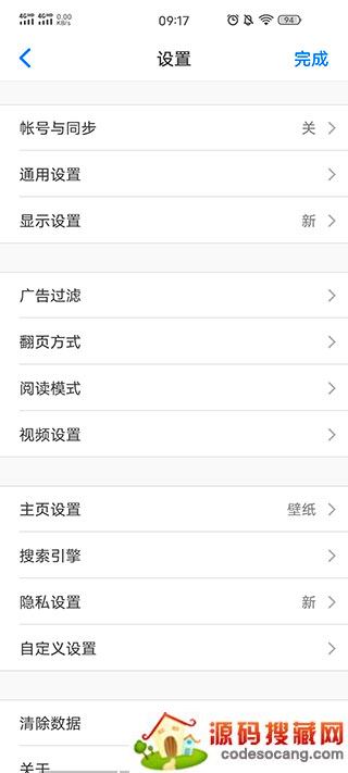 3、点开设置里面可以设置账号与同步,还有通用设置,里面包含了一些列的特色功能,如:广告过滤,翻页方式,阅读模式,视频设置,视频还可以自主设置播放速度。
