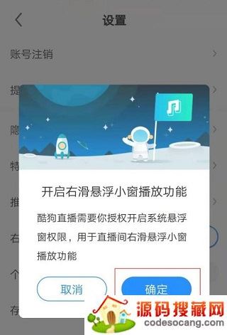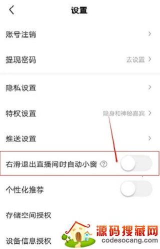 3、进入设置页面,点开右滑退出直播间时自动小窗按钮